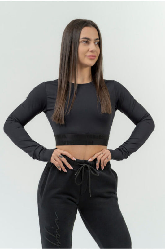 Top corto a maniche lunghe da donna NEBBIA INTENSE Perform Nero 839