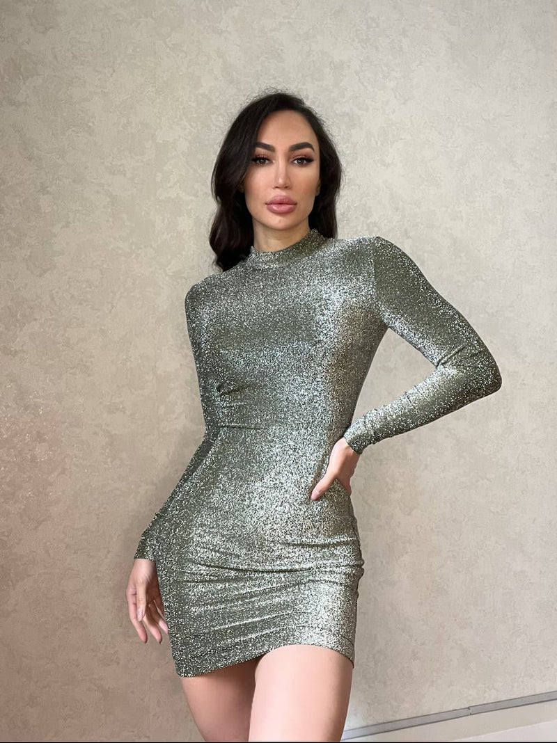 Mini abito aderente fatto a mano con glitter argento – Artigianato italiano altamente elasticizzato