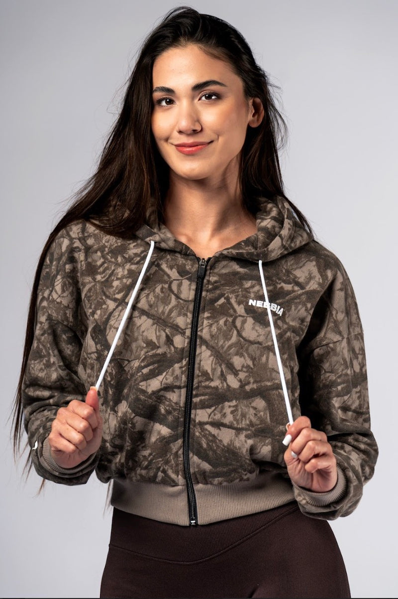Felpa con cappuccio e zip rilassata Nebbia Power 895 | Mimetica marrone chiaro